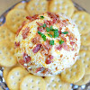 - When ready to serve, roll cheese ball in crushed Ritz Crackers and bacon.